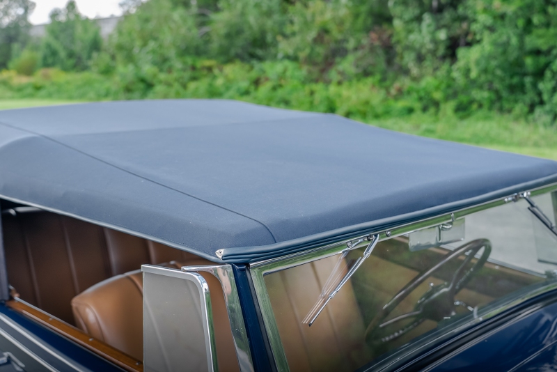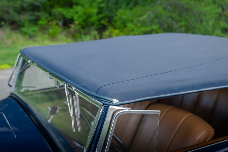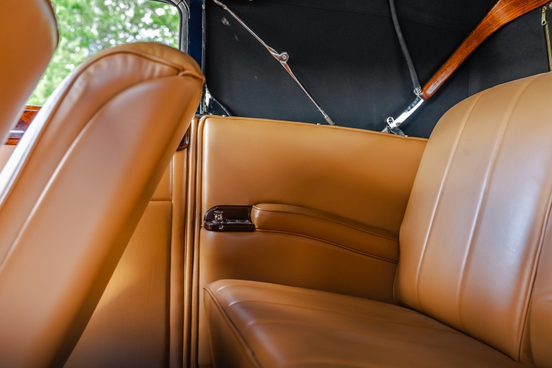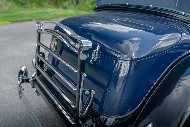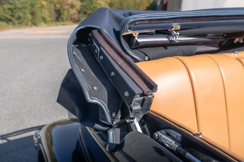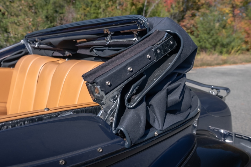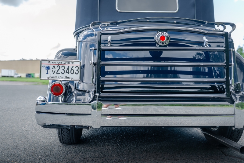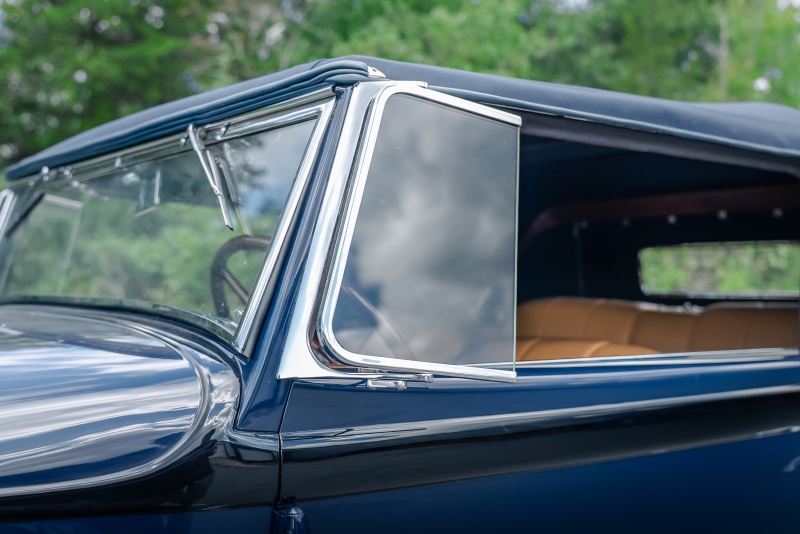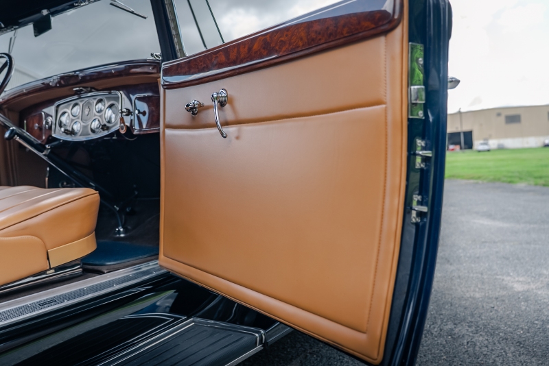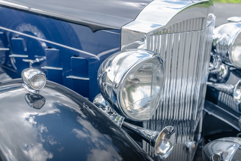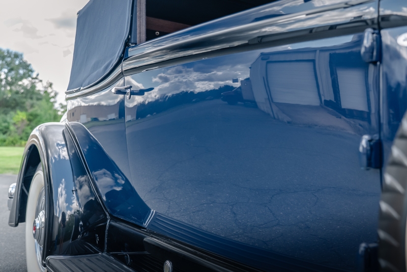 This example has been the subject of a meticulous, frame-off restoration performed to a high concours standard, returning the car to its original splendor. Every detail — from the correct Packard Navy and Black finish to the exquisite chrome brightwork, proper instruments, and luxurious leather and perfect burl faux wood interior — reflects deep respect for authenticity and craftsmanship.