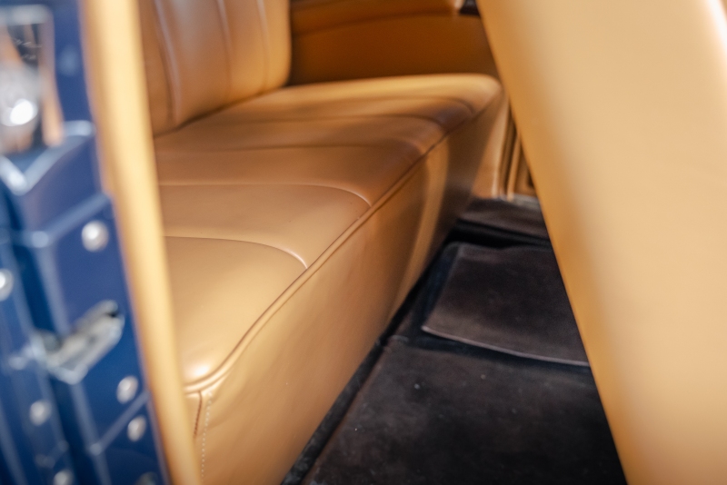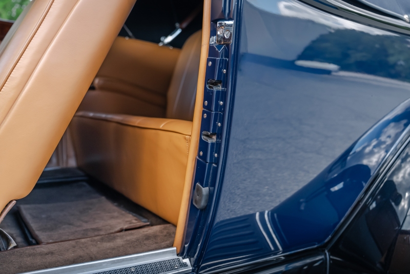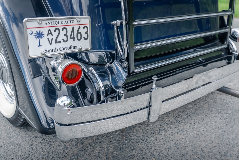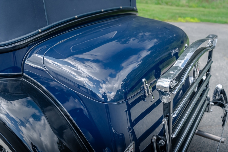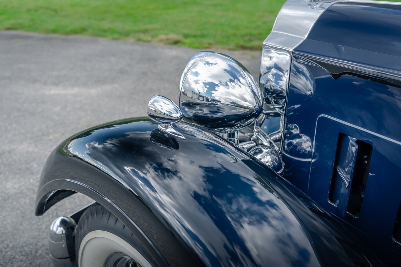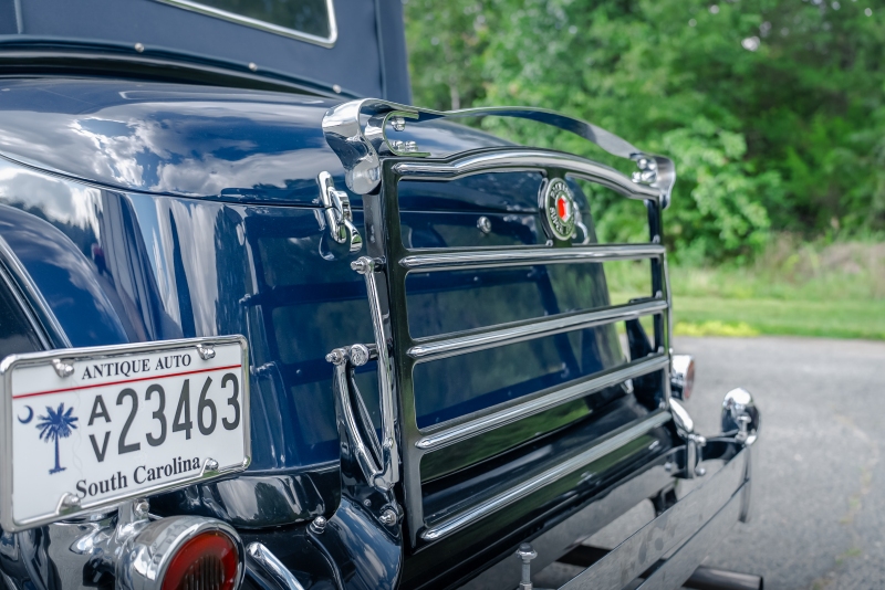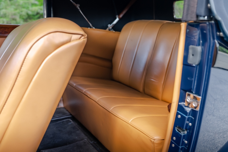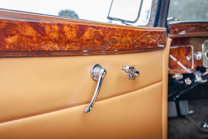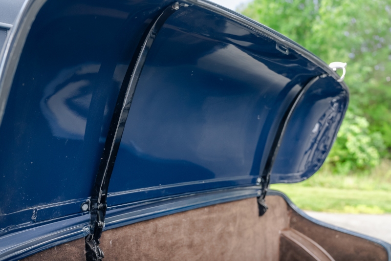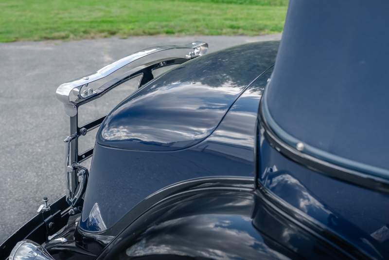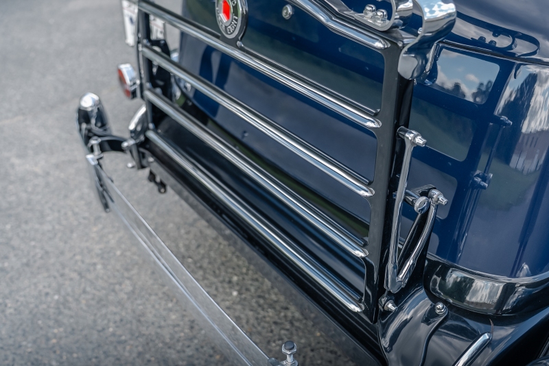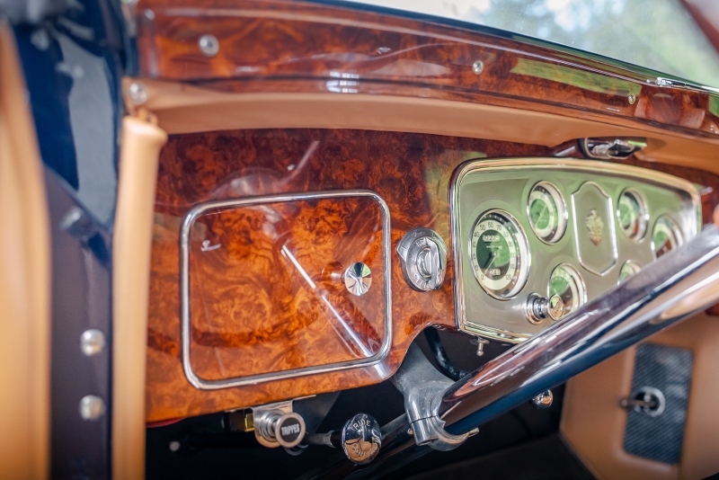 This example has been the subject of a meticulous, frame-off restoration performed to a high concours standard, returning the car to its original splendor. Every detail — from the correct Packard Navy and Black finish to the exquisite chrome brightwork, proper instruments, and luxurious leather and perfect burl faux wood interior — reflects deep respect for authenticity and craftsmanship.