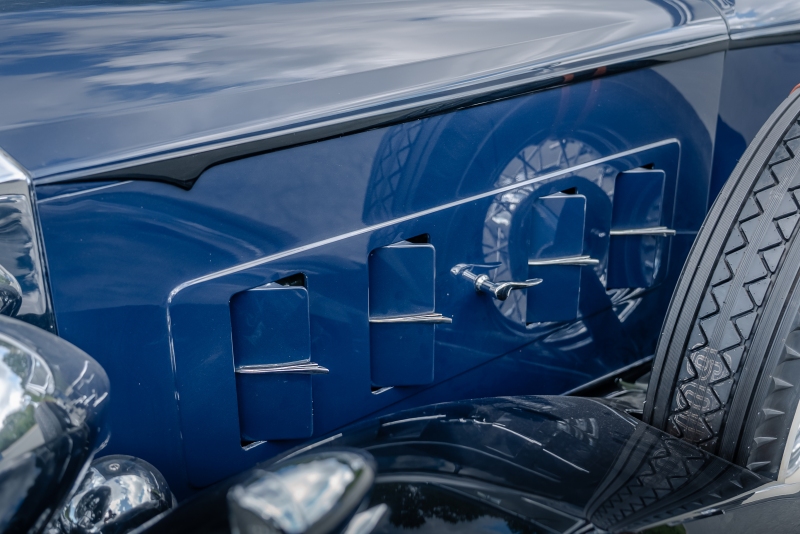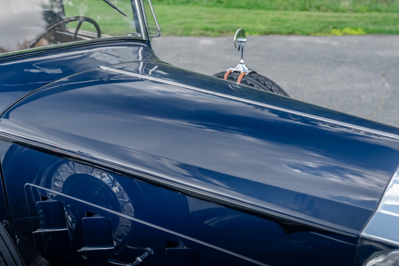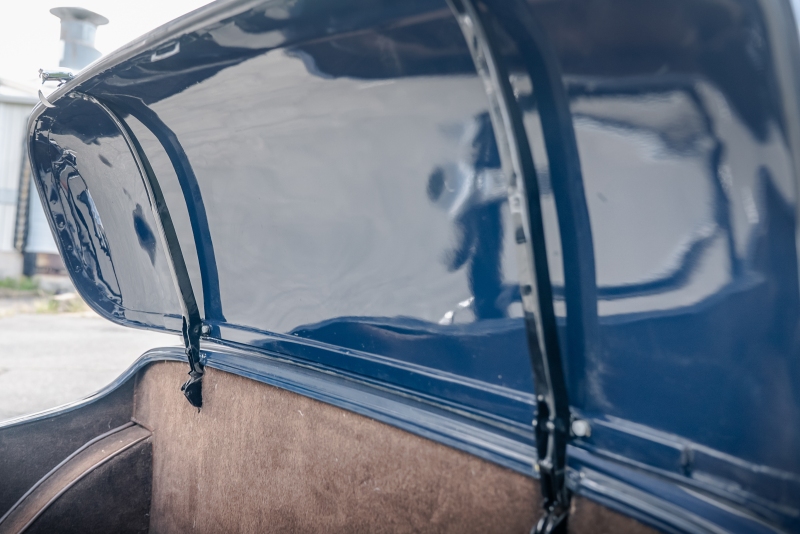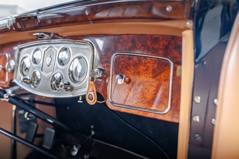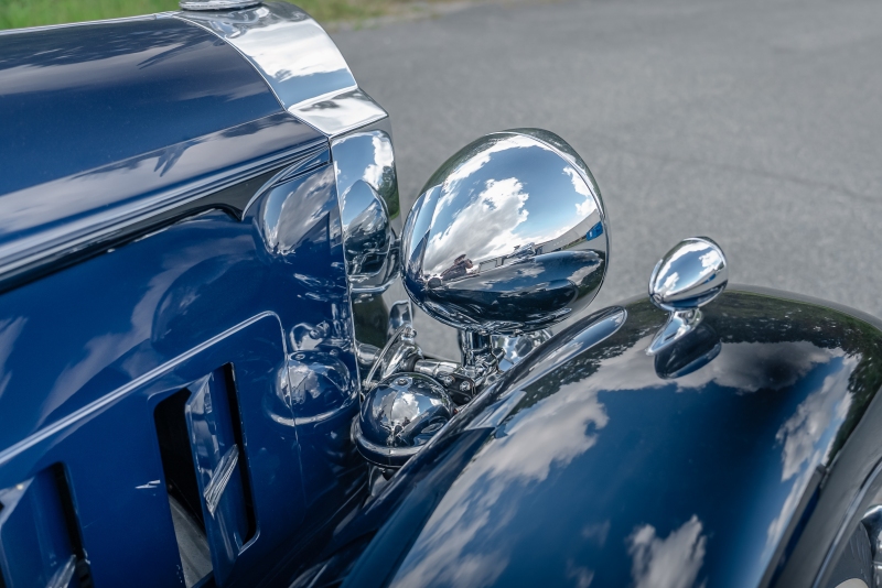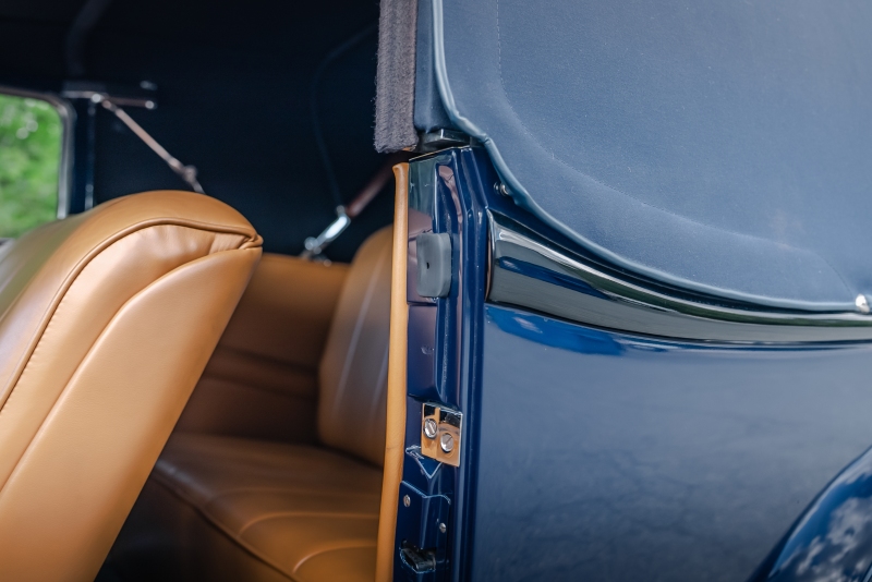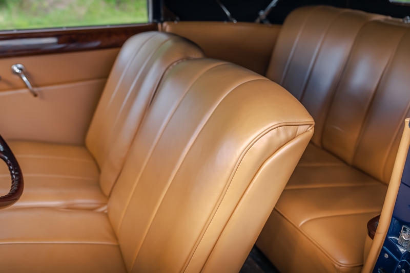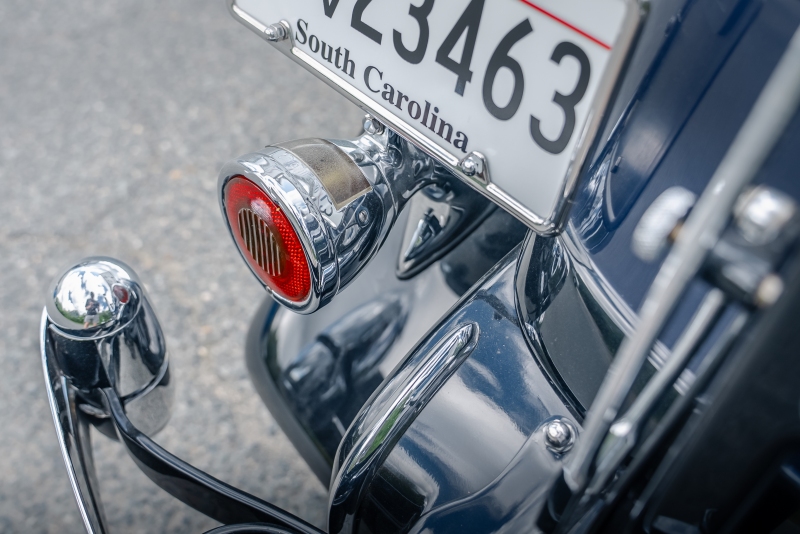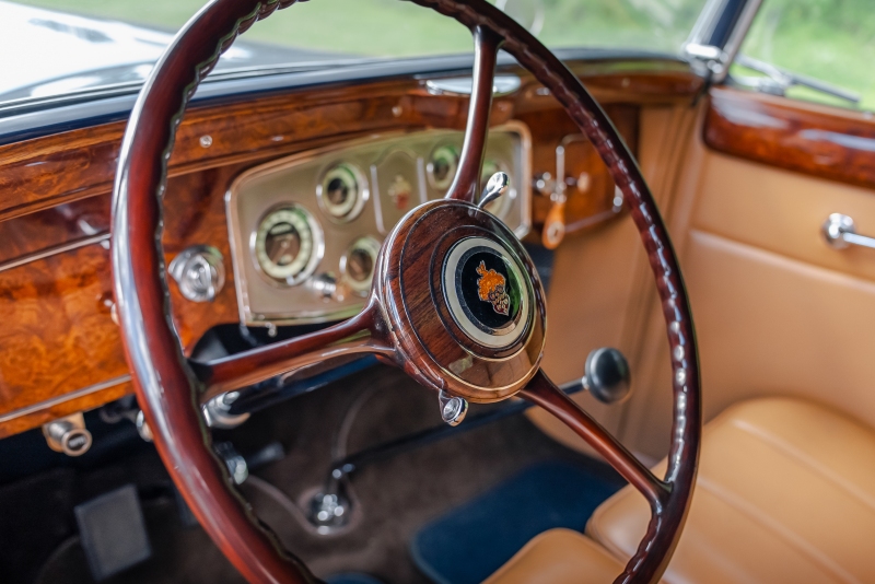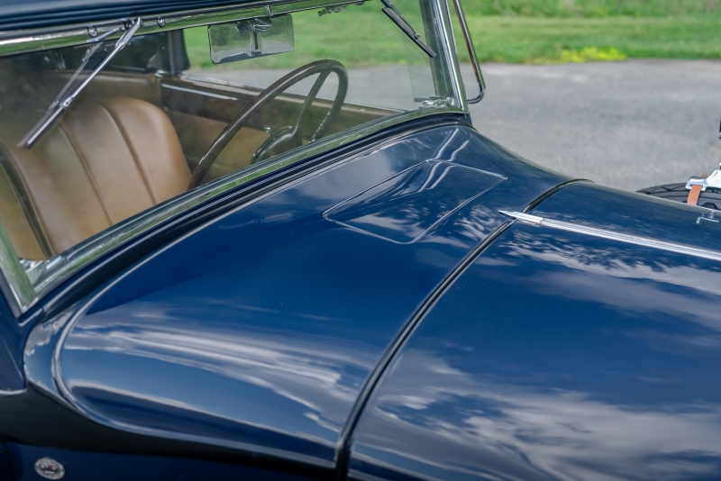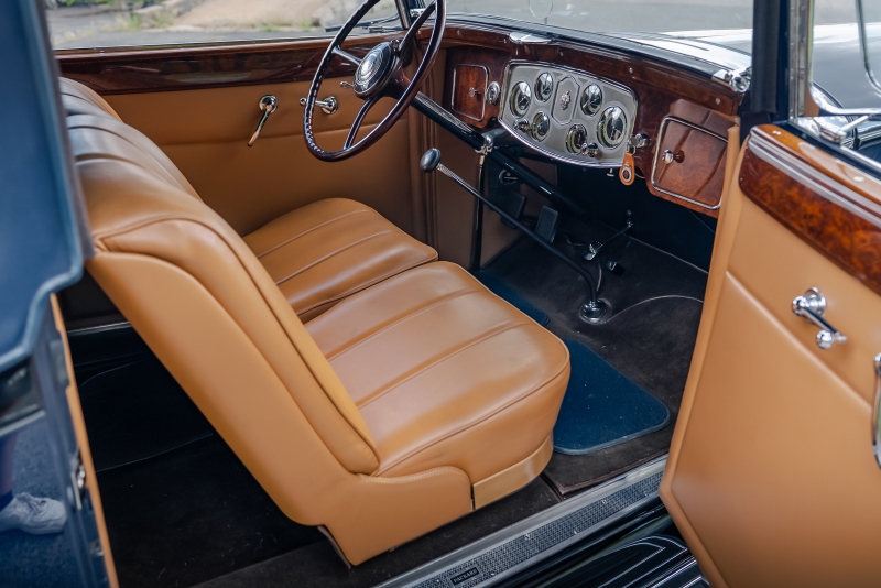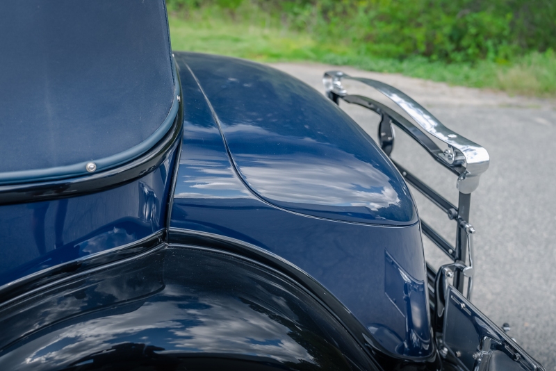 This example has been the subject of a meticulous, frame-off restoration performed to a high concours standard, returning the car to its original splendor. Every detail — from the correct Packard Navy and Black finish to the exquisite chrome brightwork, proper instruments, and luxurious leather and perfect burl faux wood interior — reflects deep respect for authenticity and craftsmanship.