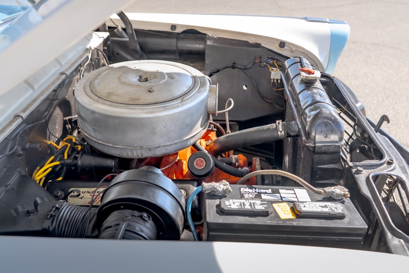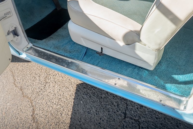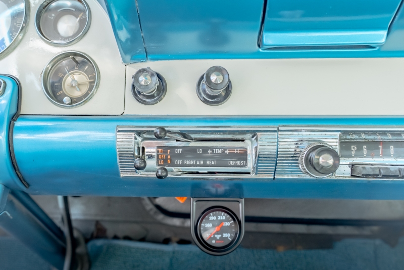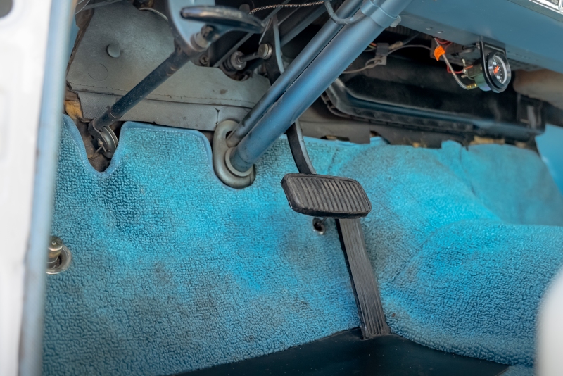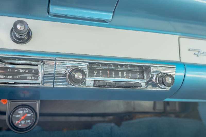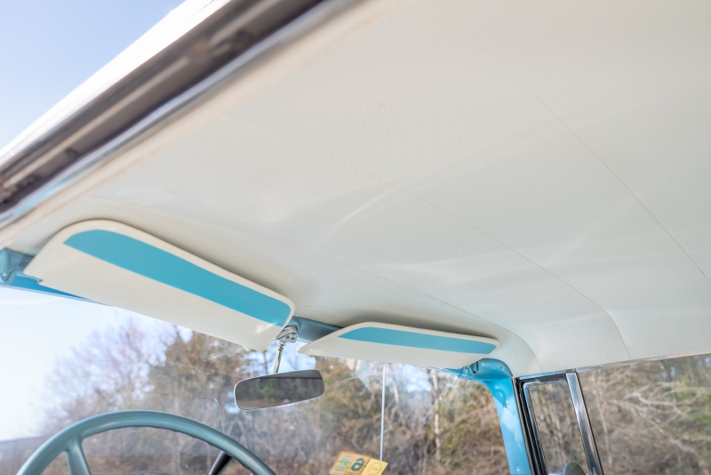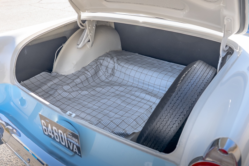 Inside, the car features a matching blue vinyl and fabric interior that is both comfortable and visually correct for the period. The headliner is in excellent condition, and the cabin presents as clean, inviting, and ready for enjoyment. Importantly, all gauges and lights are in proper working order, reflecting careful ownership and attention to detail.