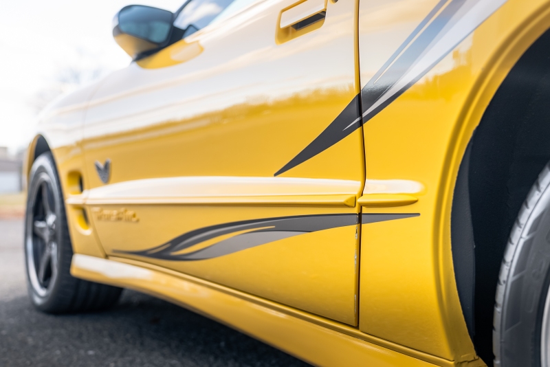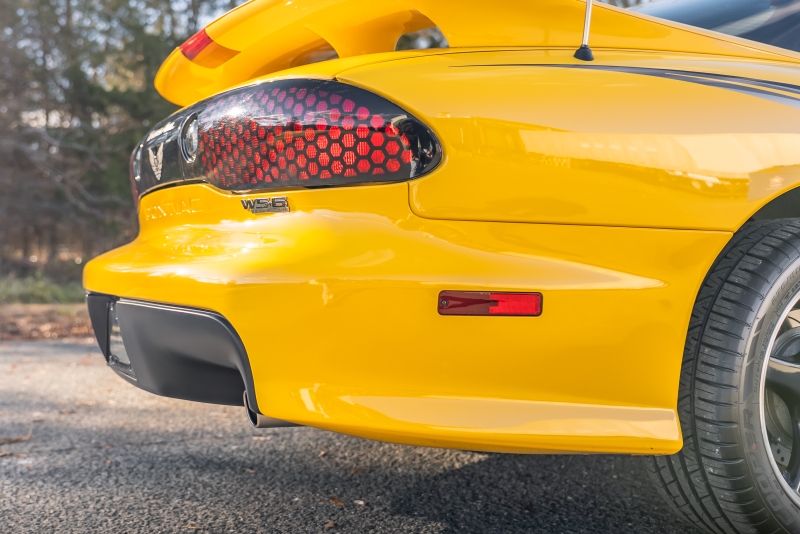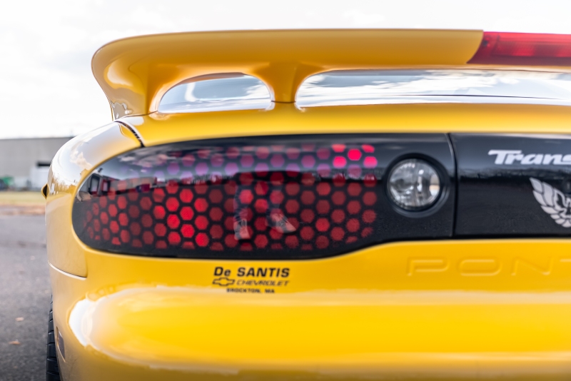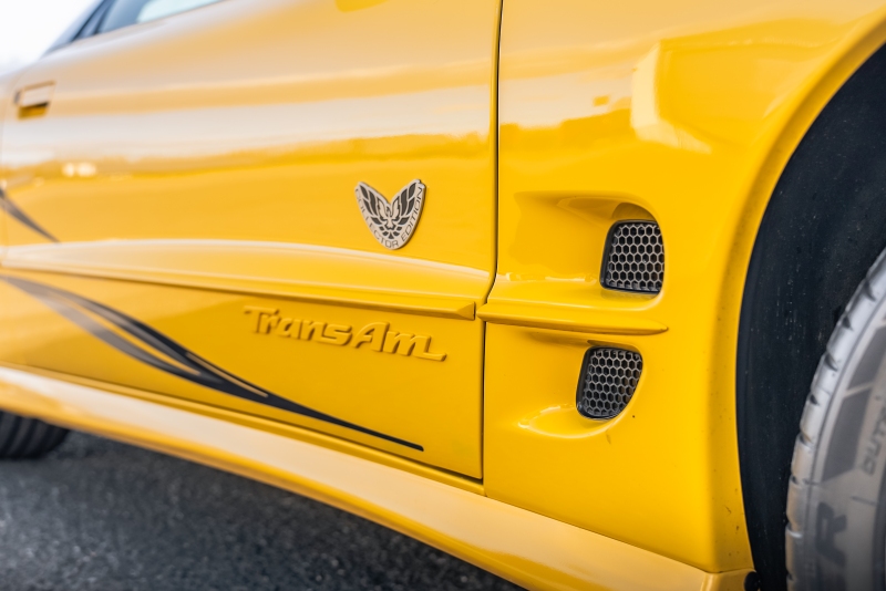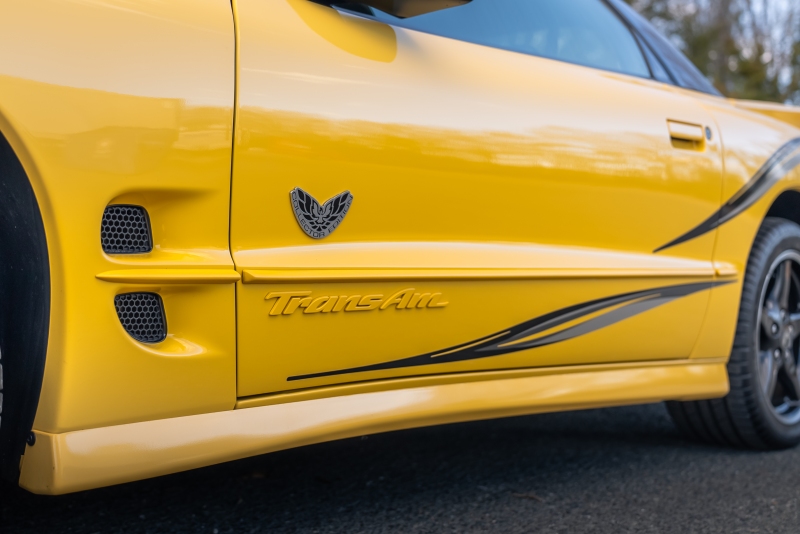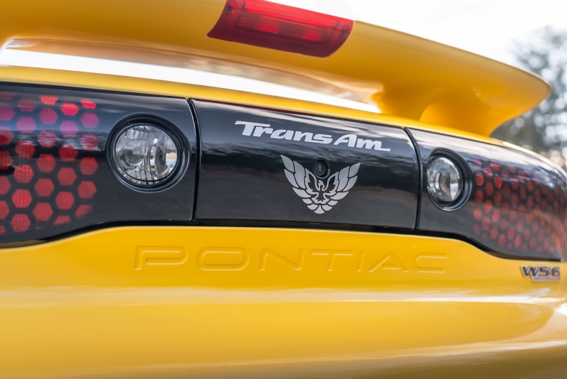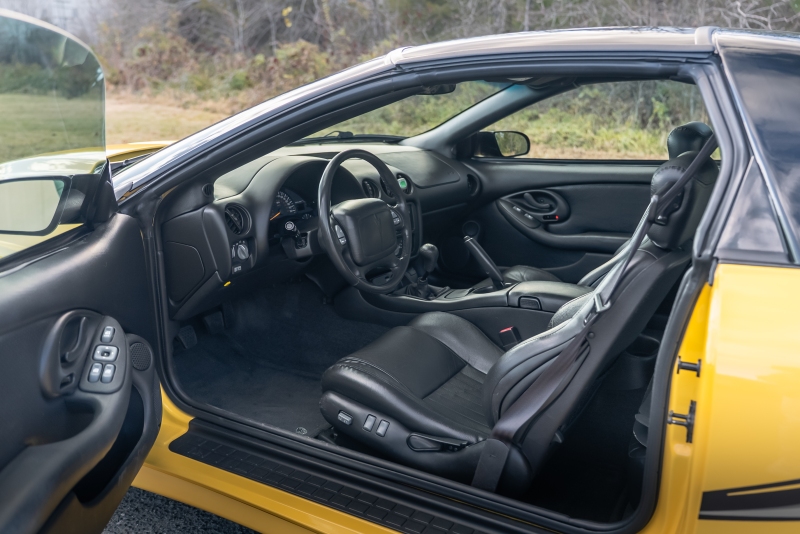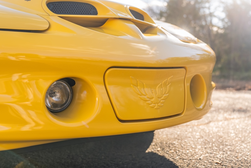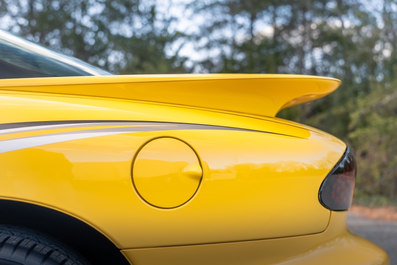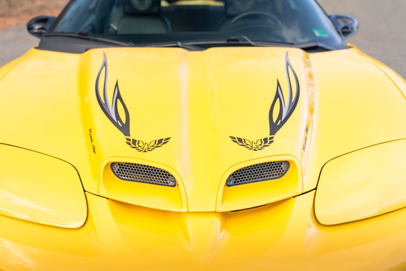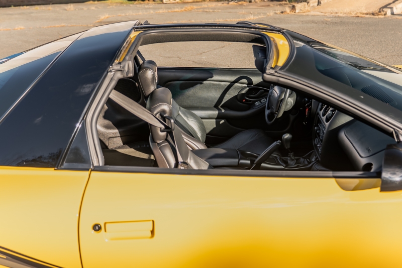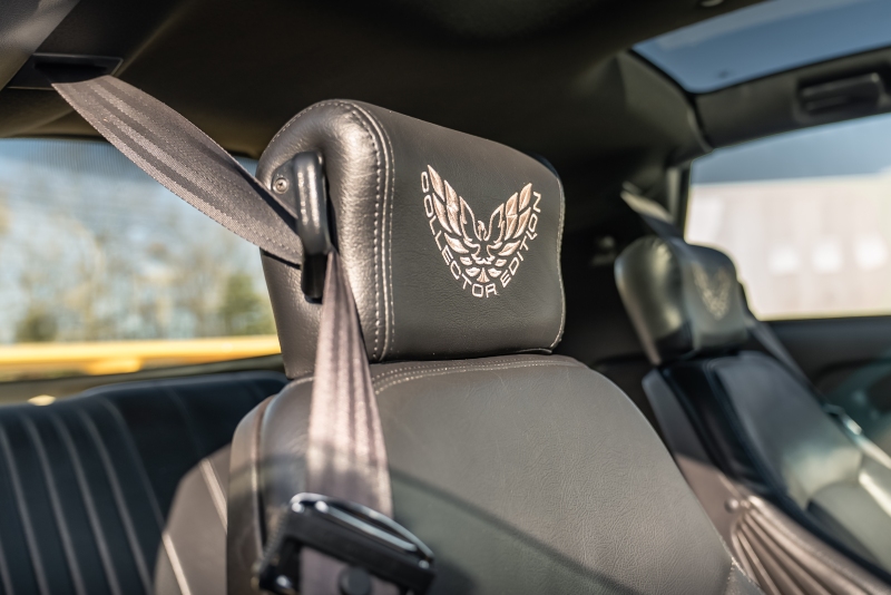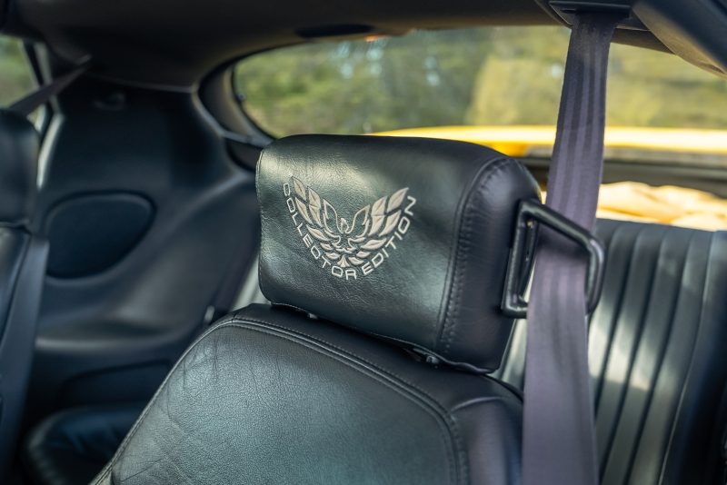 Finished exclusively in Collector Yellow, the 2002 CE showcases a contemporary interpretation of Pontiac’s classic “screaming chicken” motif, complemented by dual black racing stripes extending across the hood, doors, and rear quarters. The rear fascia features the distinctive two-tone yellow/black treatment unique to the edition, with Collector’s Edition and Trans Am badging accenting the car’s exterior.