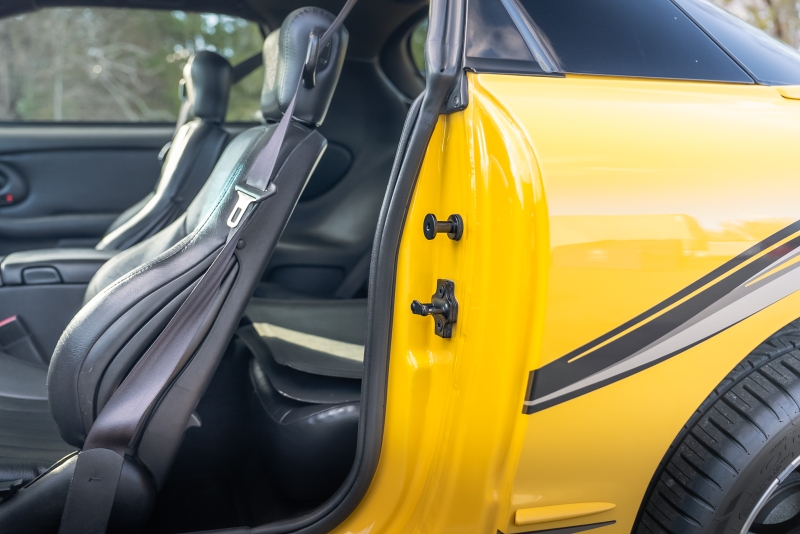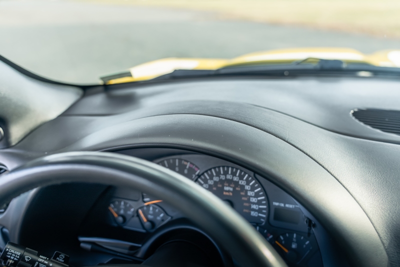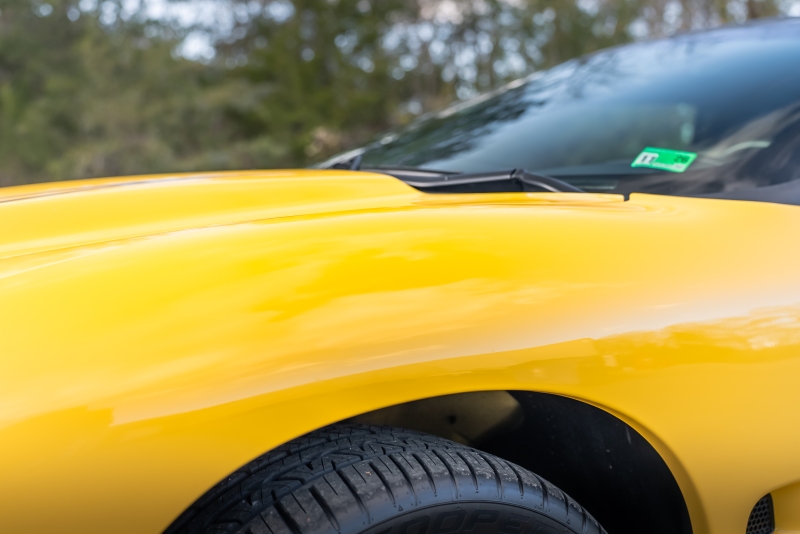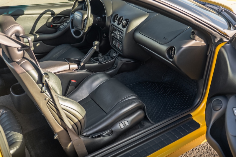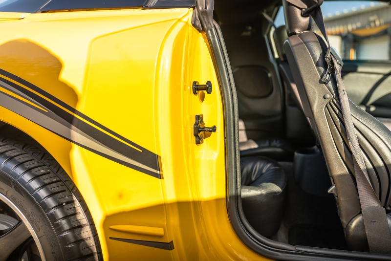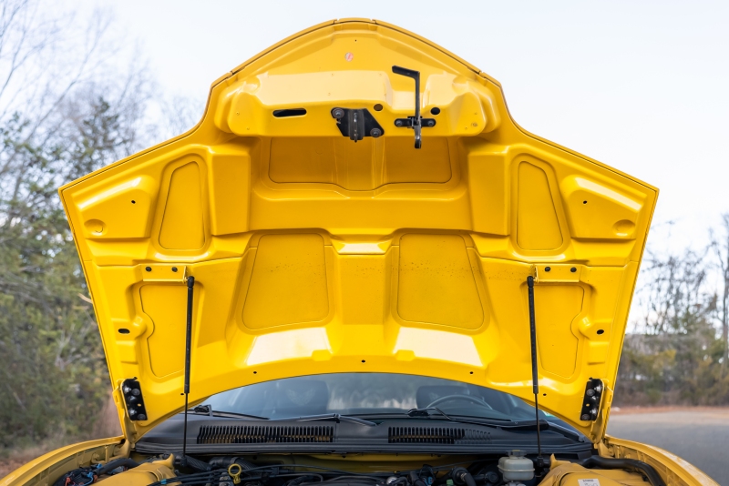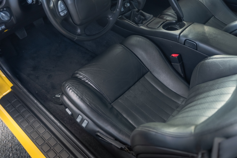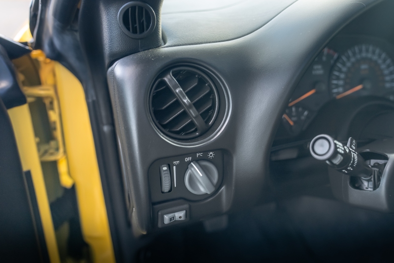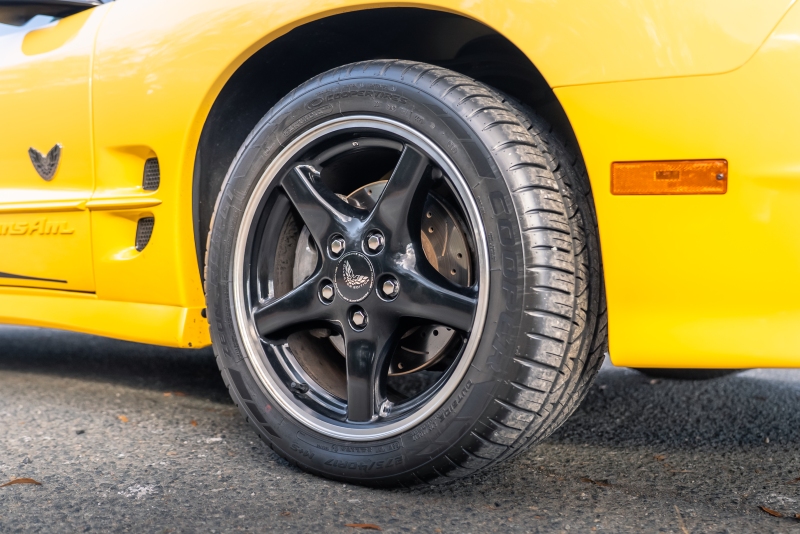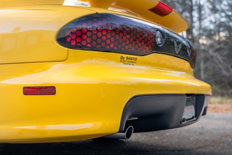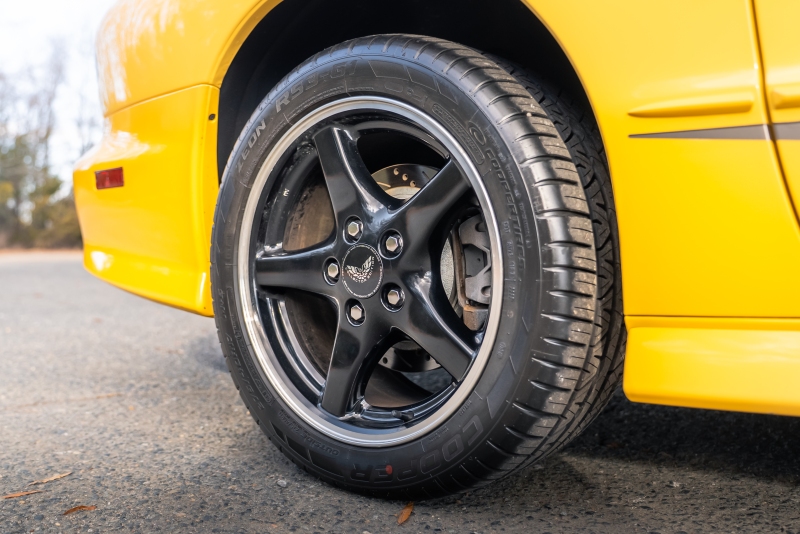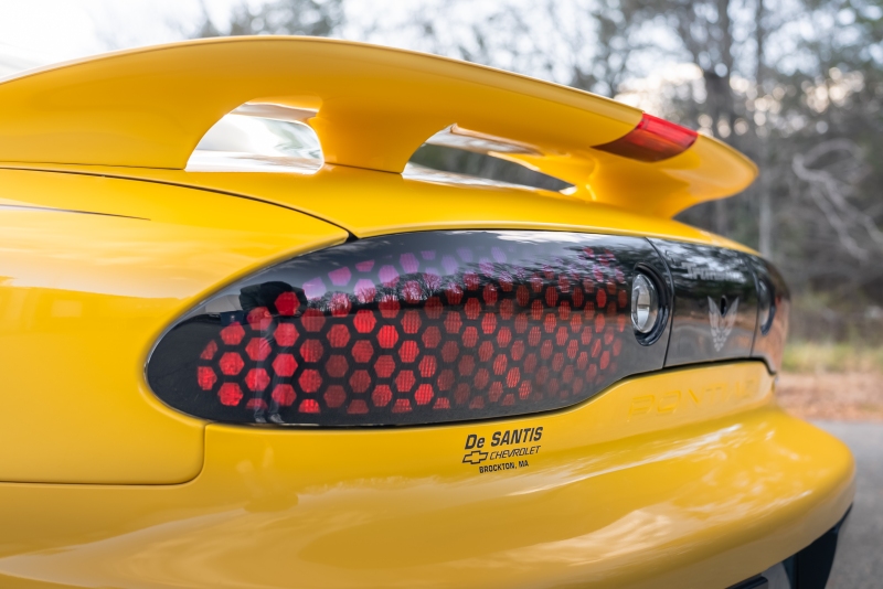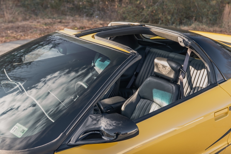 Finished exclusively in Collector Yellow, the 2002 CE showcases a contemporary interpretation of Pontiac’s classic “screaming chicken” motif, complemented by dual black racing stripes extending across the hood, doors, and rear quarters. The rear fascia features the distinctive two-tone yellow/black treatment unique to the edition, with Collector’s Edition and Trans Am badging accenting the car’s exterior.